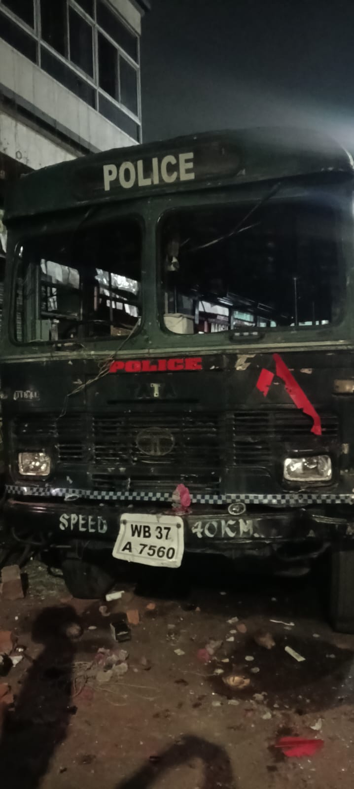 बताया जा रहा है कि बस पर “पश्चिम बंगाल पुलिस” लिखा था।