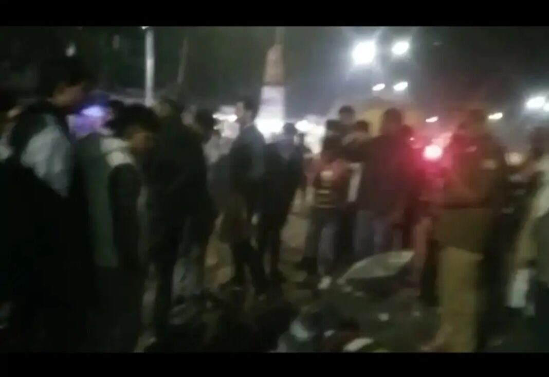 घटना के बाद Auraiya Road Accident स्थल पर भीड़ जमा हो गई।