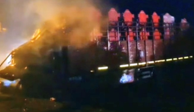 टक्कर के तुरंत बाद दोनों वाहनों में आग भड़क उठी।