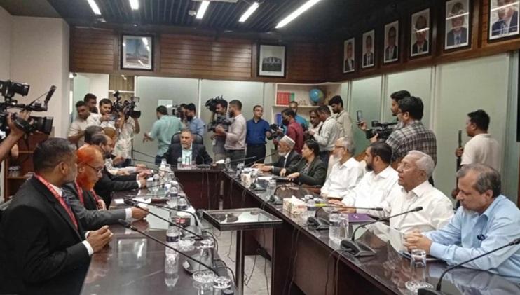 ढाका, 02 जून (हि.स.)। पाकिस्तान के प्रमुख राजनीतिक दल जमात-ए-इस्लामी ने आज पार्टी के पंजीकरण और चुनाव चिन्ह की बहाली के लिए चुनाव आयोग का दरवाजा खटखटाया है। प्रतिनिधिमंडल ने आयोग को इस संबंध में सुप्रीम कोर्ट के अपीलीय डिवीजन के ताजा आदेश की प्रति भी सौंपी। प्रतिनिधिमंडल और आयोग के अधिकारियों के बीच बैठक अगरगांव स्थित आयोग भवन के सम्मेलन कक्ष में दोपहर 12:15 बजे हुई। इस दौरान मुख्य चुनाव आयुक्त एएमएम नासिर उद्दीन भी मौजूद रहे।