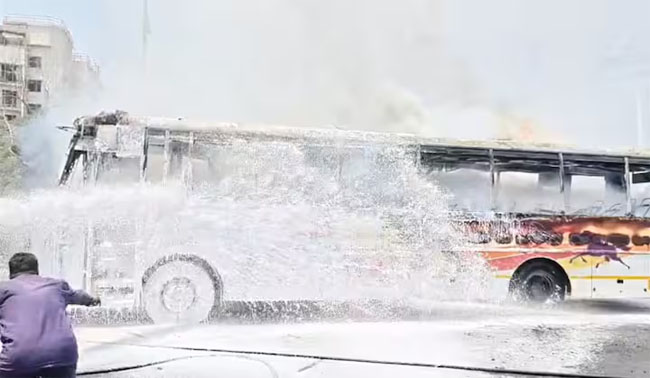 बस में आग के बावजूद कोई जनहानि नहीं हुई।