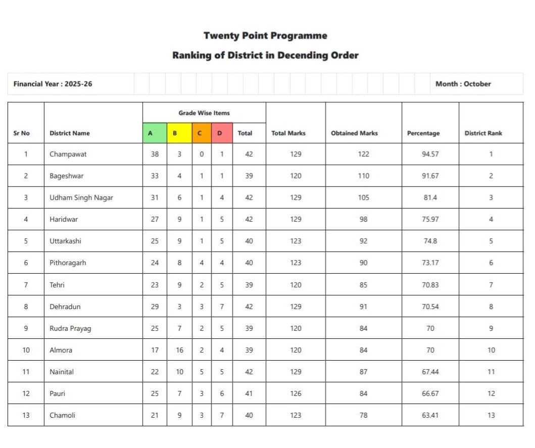 चम्पावत ने फिर रचा कीर्तिमान, बीस सूत्रीय कार्यक्रम रैंकिंग में चौथे माह भी नंबर वन