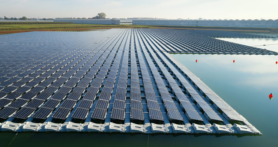 - हजारों सोलर पैनल पानी पर तैरते हैं