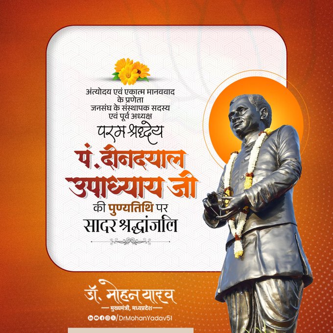 Deendayal Upadhyaya Punyatithi आज श्रद्धा भाव से मनाई जा रही है।