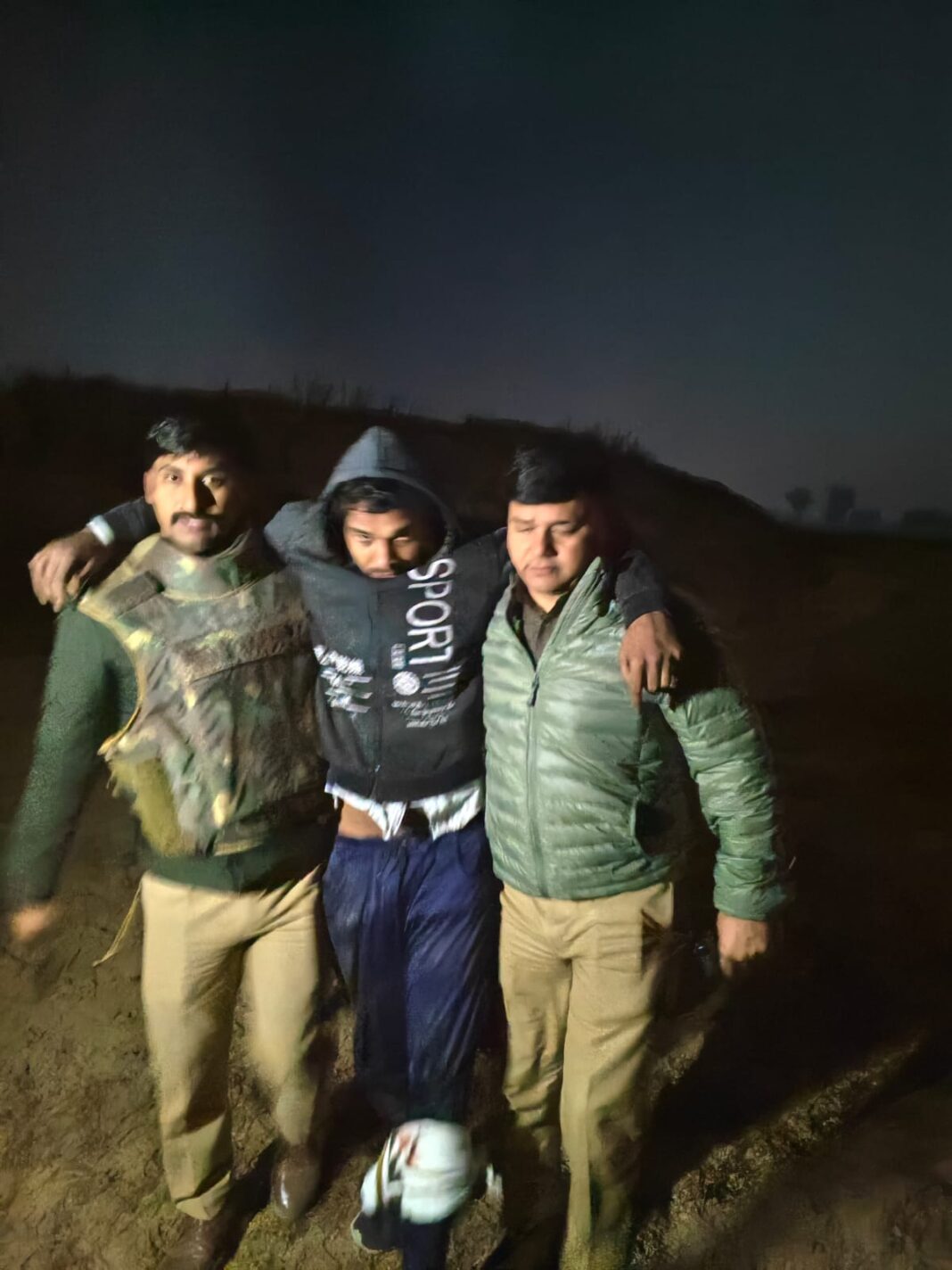 जवाबी कार्रवाई में पुलिस की गोली उसके पैर में लगी।