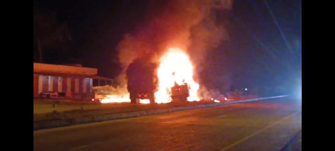 धसड़ा मोड़ पर ट्रक और डंपर की आमने-सामने टक्कर से लगी आग