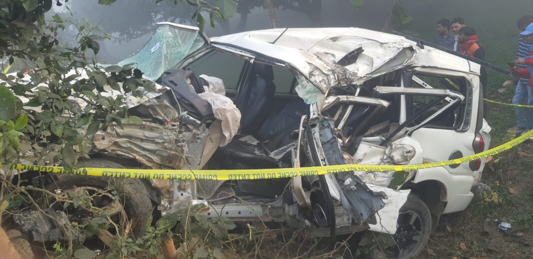 महादेवा गांव के पास वाहन पेड़ से टकराया।