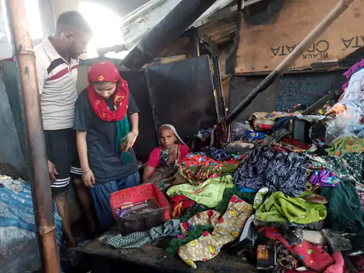 दुकानदार सीमा की चप्पल और मेकअप की दुकान, मीना की सिंगार की दुकान, रेखा की कपड़ों की दुकान और शकील की जूते-चप्पलों की दुकान पूरी तरह जल गई।