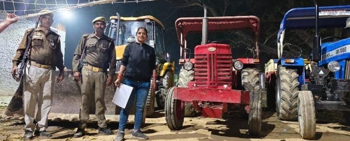दो ट्रैक्टर और एक जेसीबी जब्त