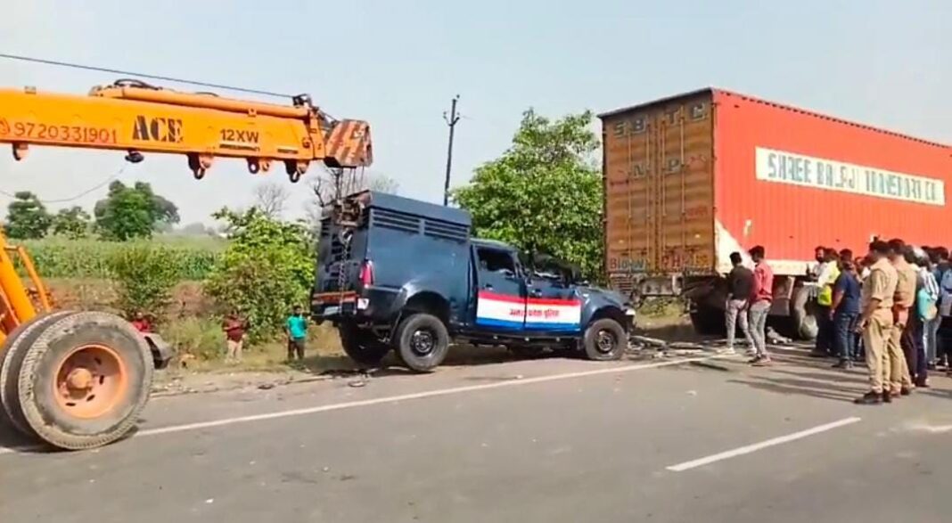 अलीगढ़ : खड़े कैंटर से टकराई पुलिस वैन, एक दरोगा व तीन सिपाही सहित पांच की मौत