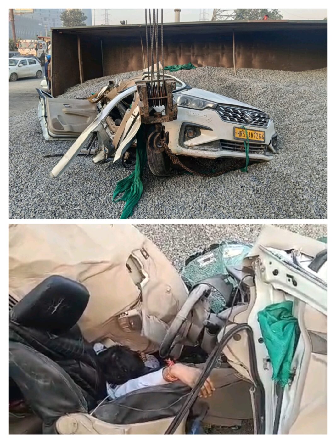 गुरुग्राम में ट्राला पलटा, सवारियों से भरी कार दबी, तीन गंभीर घायल