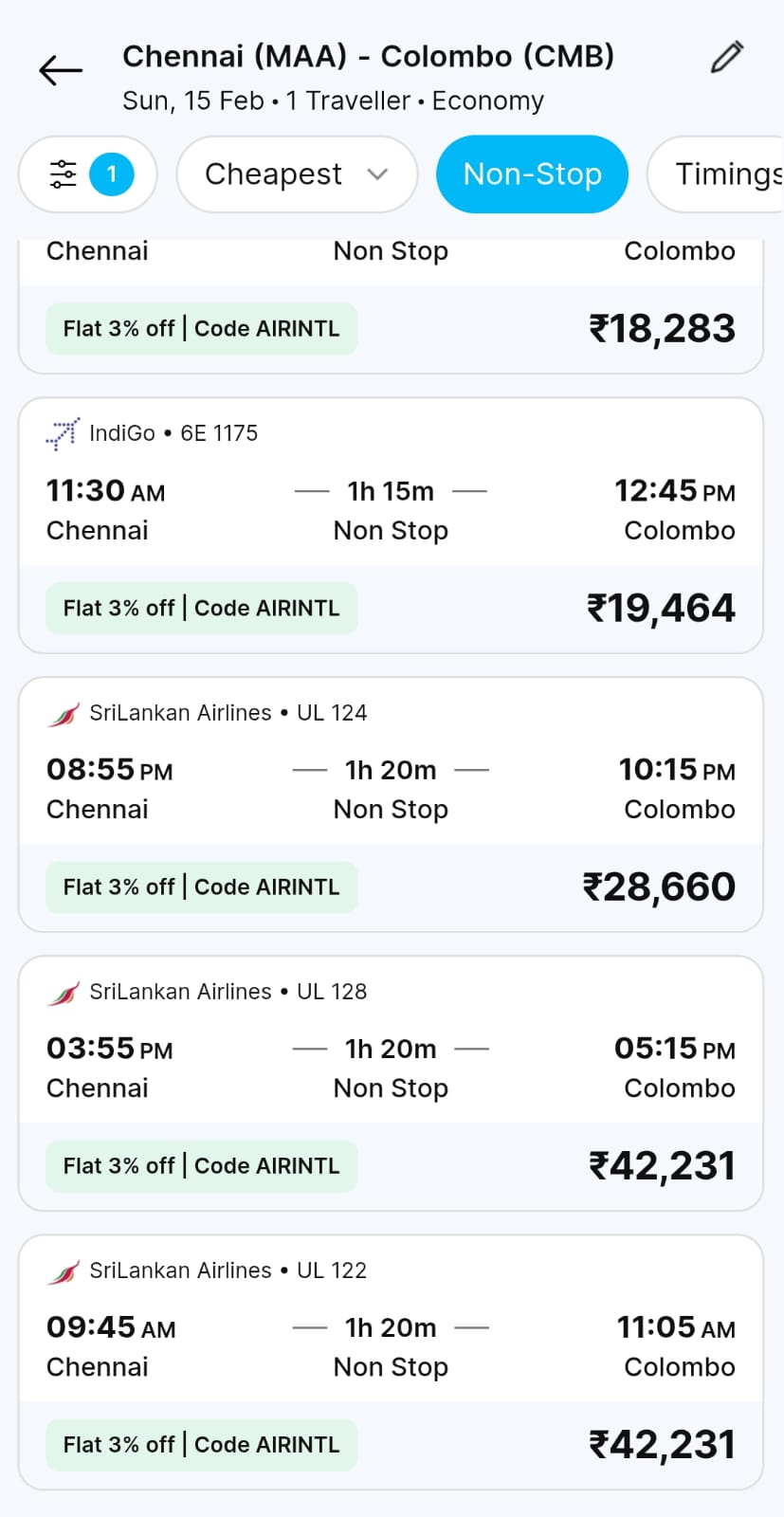 IndiGo और SriLankan Airlines के किराए बढ़े।