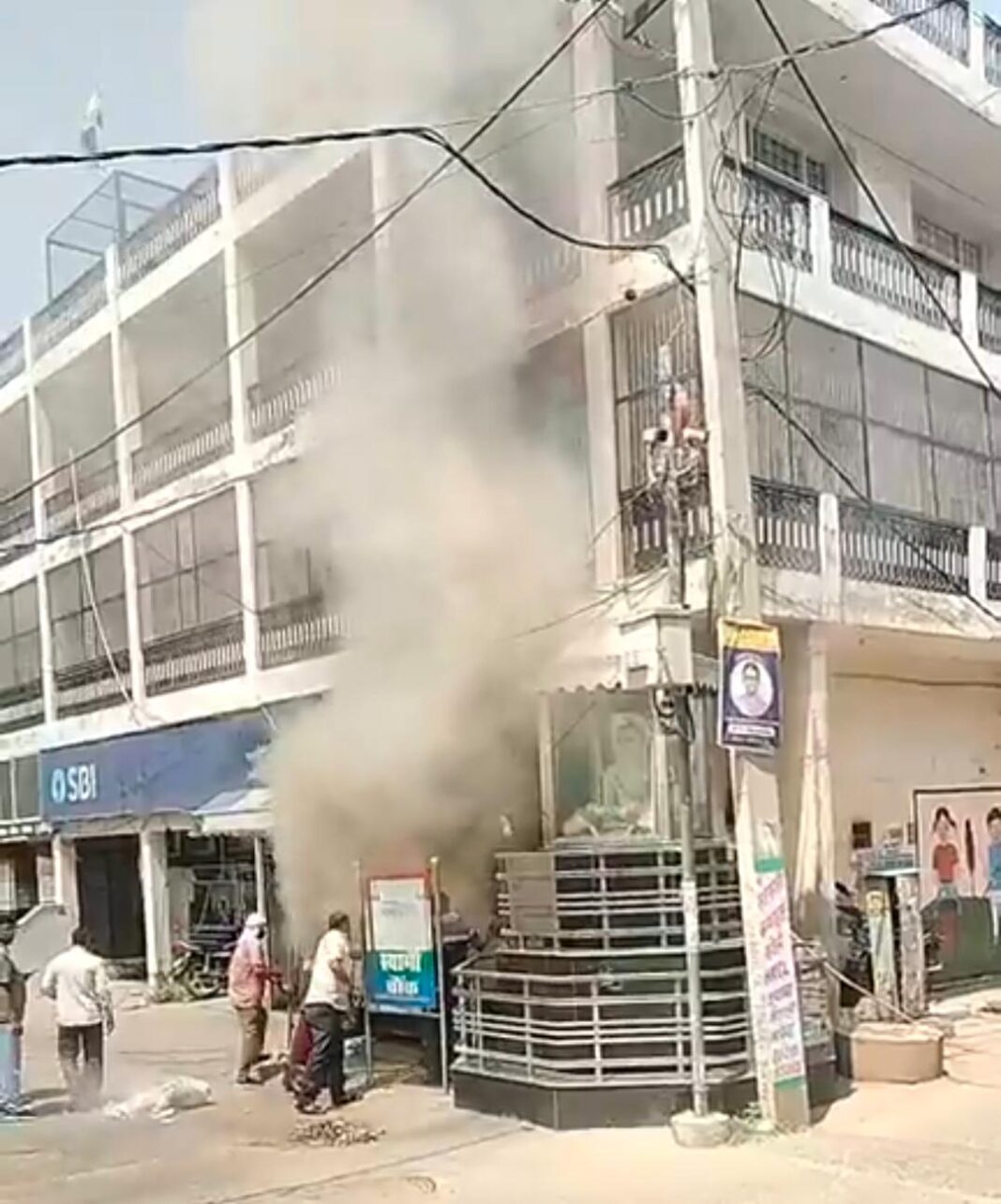 🔥 SBI बैंक के बाहर लगी आग से मची अफरा-तफरी