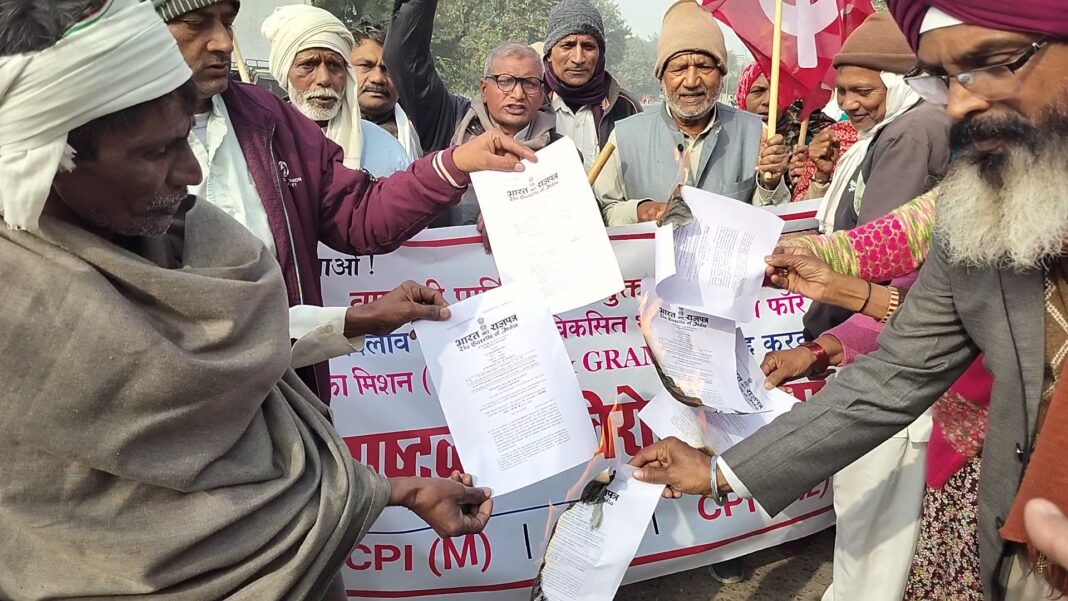 यह प्रदर्शन वीबी जीराम जी कानून के खिलाफ किया गया।
