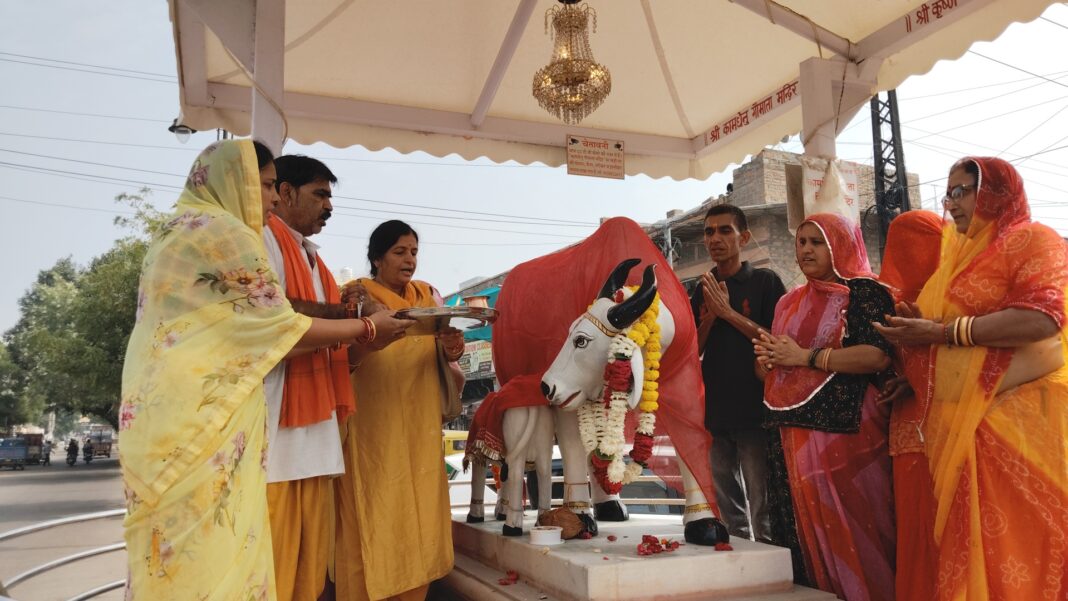 गायों को चुनरी ओढ़ाई और भोग लगाया