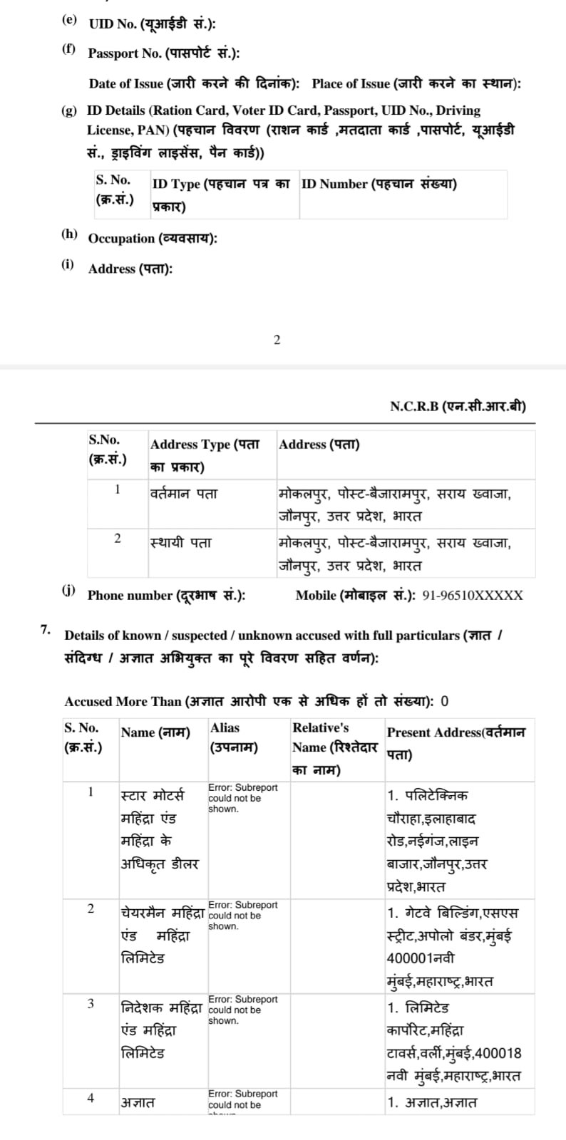 पीड़ित ने आरोप लगाया कि उनके साथ धोखाधड़ी, शोषण, विश्वासघात और जालसाजी की गई। मुकदमा 23 सितंबर 2025 को दर्ज किया गया और इसमें स्टार मोटर्स, महिंद्रा एंड महिंद्रा लिमिटेड, मुंबई के अध्यक्ष, निदेशक और एक अज्ञात व्यक्ति को आरोपी बनाया गया।