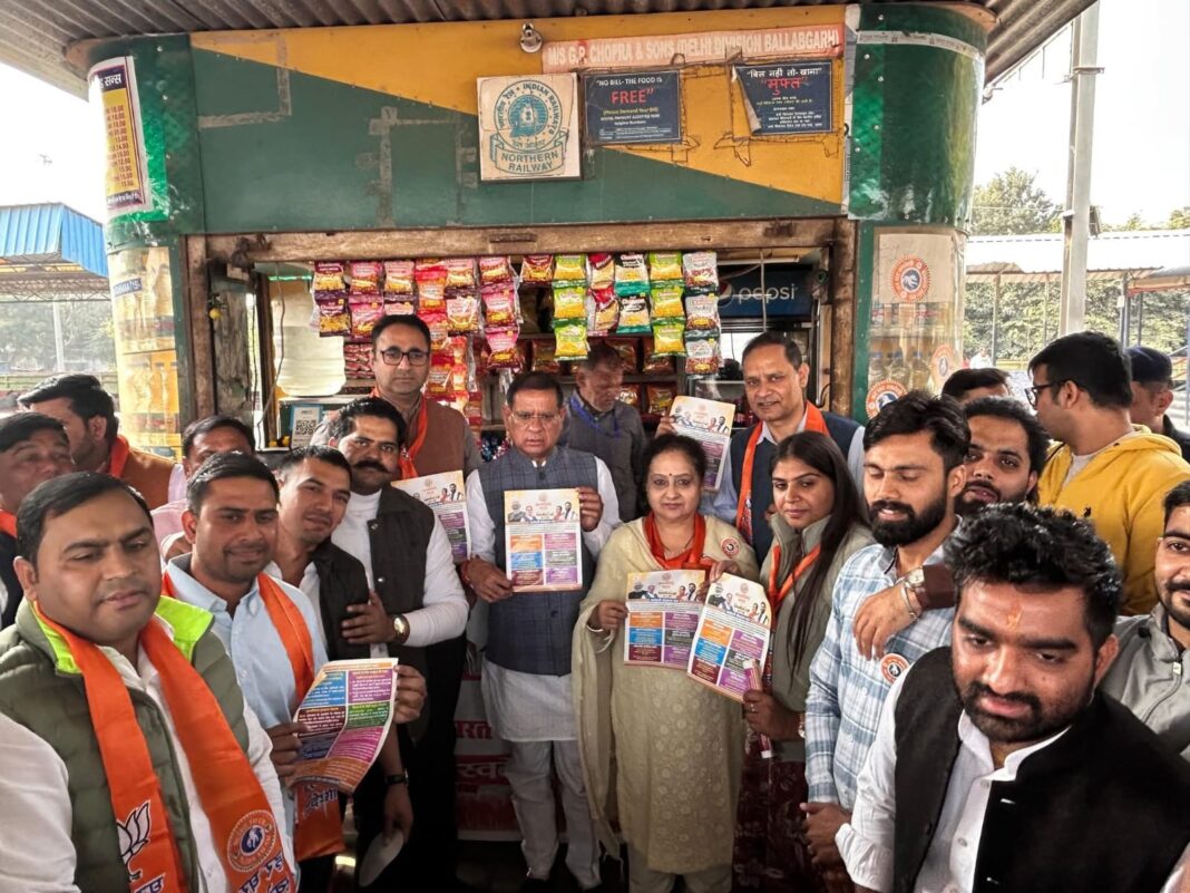बल्लभगढ़ स्टेशन पहुंचे मंत्री राजेश नागर, यात्रियों से स्वदेशी अपनाने की अपील