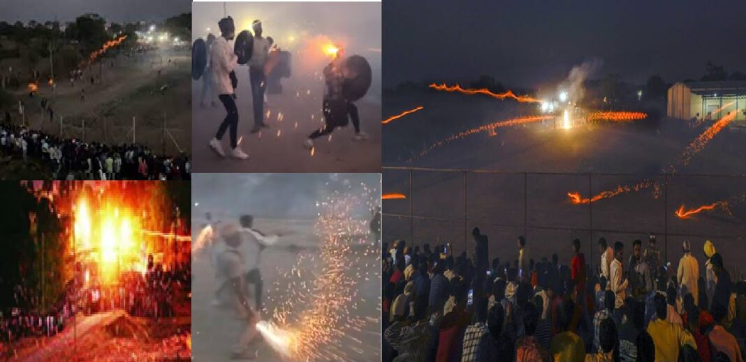 मध्य प्रदेश के इंदौर जिले के गौतमपुरा में मंगलवार देर रात वार्षिक हिंगोट युद्ध परंपरा का आयोजन हुआ। दिवाली के दूसरे दिन मनाया जाने वाला यह उत्सव आग, रोमांच और श्रद्धा का मिश्रण लेकर आता है।