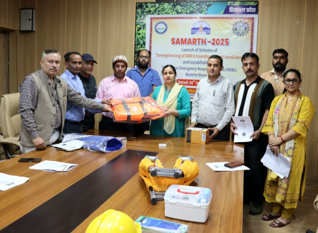 नाहन में जिला आपदा प्रबंधन प्राधिकरण की अध्यक्ष एवं उपायुक्त प्रियंका वर्मा ने पंचायत आपातकालीन प्रतिक्रिया केंद्र (पीईआरसी) योजना का शुभारम्भ किया। इस अवसर पर 10 चयनित ग्राम पंचायतों को आपातकालीन प्रतिक्रिया किट प्रदान की गई।