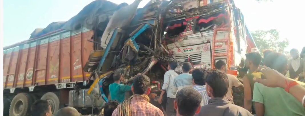 Nawada Road Accident में एक ट्रक चालक केबिन में फंस गया।