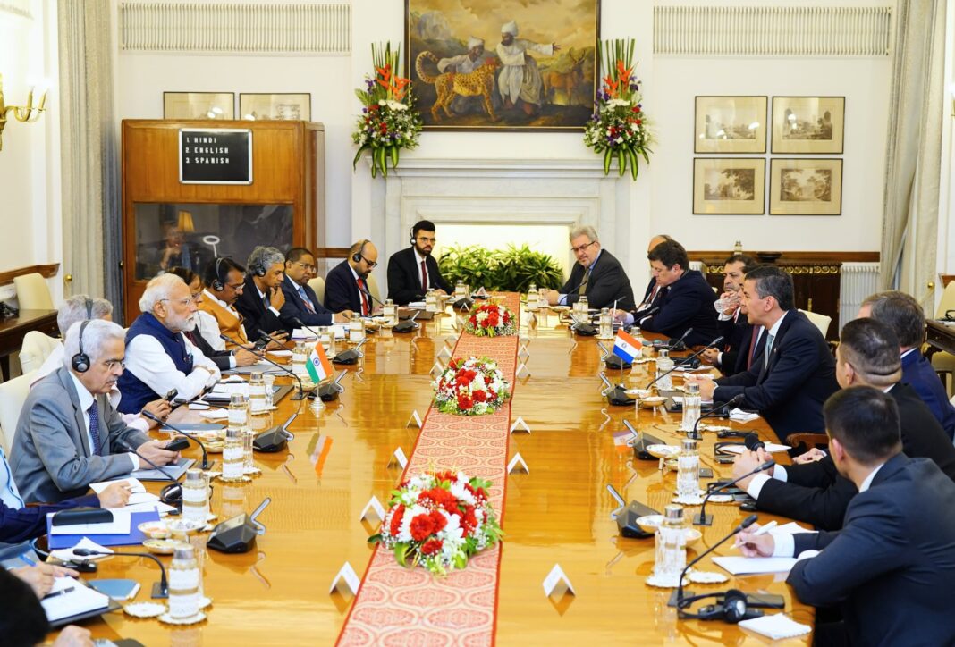 प्रधानमंत्री मोदी ने पैराग्वे के प्रतिनिधिमंडल का भारत में स्वागत करते हुए कहा कि पैराग्वे दक्षिण अमेरिका में भारत के महत्वपूर्ण भागीदारों में से एक है। उन्होंने कहा कि दोनों देशों के बीच लोकतांत्रिक आदर्श और जनकल्याण की सोच एक जैसी है। प्रधानमंत्री ने कहा कि दोनों देशों के बीच आर्थिक सहयोग सहित डिजिटल प्रौद्योगिकी, महत्वपूर्ण खनिज, ऊर्जा, कृषि, स्वास्थ्य, रक्षा, रेलवे और अंतरिक्ष जैसे क्षेत्रों में सहयोग के नए अवसर हैं। उन्होंने कहा कि एमईआरसीओएसयूआर के साथ भारत का प्रेफरेंशियल ट्रेड एग्रीमेंट है और दोनों देश इसके विस्तार पर काम कर सकते हैं।