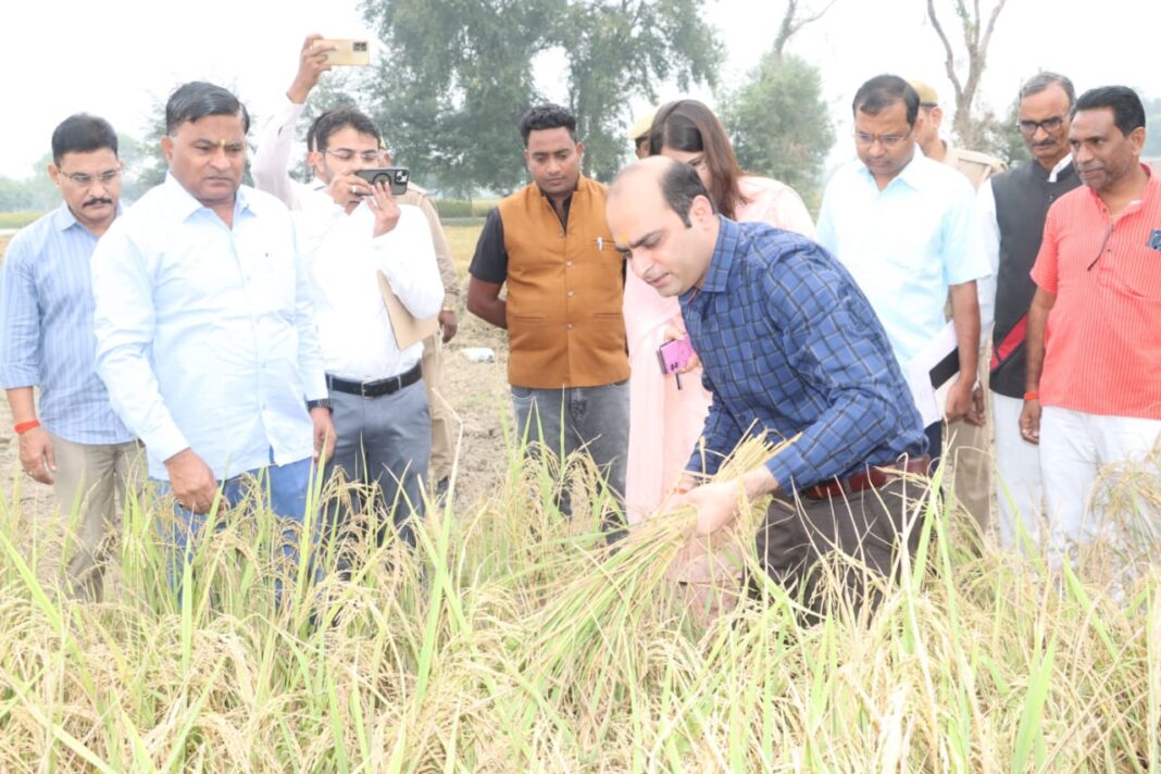 प्रतापगढ़, 27 अक्टूबर (हि.स.)। उत्तर प्रदेश के प्रतापगढ़ जिले में जिलाधिकारी शिव सहाय अवस्थी ने सोमवार को स्वयं खेत में पहुंचकर धान की फसल की पैदावार का आकलन किया। यह क्रॉप कटिंग प्रधानमंत्री फसल बीमा योजना के अंतर्गत की गई, ताकि किसानों को सटीक क्षतिपूर्ति मिल सके।