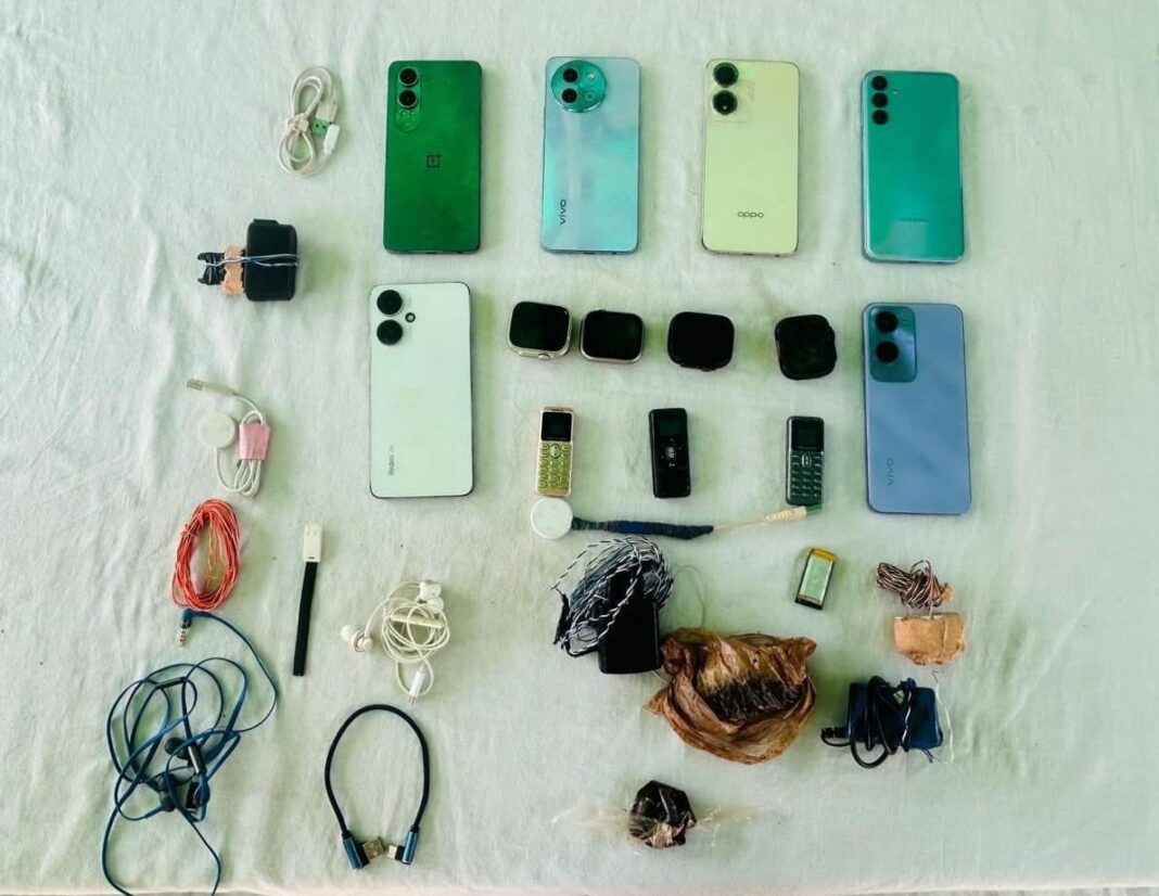 आधार पर जेल में छापेमारी की गई। इस दौरान नौ मोबाइल फोन, चार स्मार्टवॉच, 50 ग्राम अफीम और अन्य प्रतिबंधित सामान बरामद