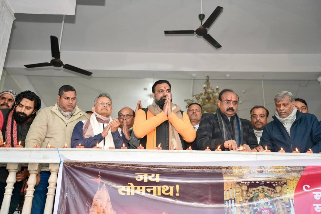 Somnath Swabhiman Parv के तहत खाजपुरा शिव मंदिर में दीपोत्सव हुआ।