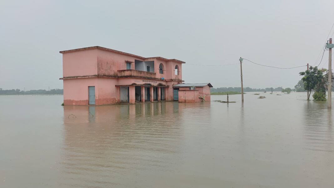 भागलपुर जिले के गोपालपुर विधानसभा क्षेत्र के तीनटंगा गांव में बाढ़ का कहर जारी है। प्राथमिक विद्यालय तीनटंगा करारी पूरी तरह पानी में डूब चुका है, जिससे पढ़ाई-लिखाई बंद हो गई है। घुटनों से ऊपर तक पानी भरने के कारण न शिक्षक पहुंच पा रहे हैं और न ही छात्र।
