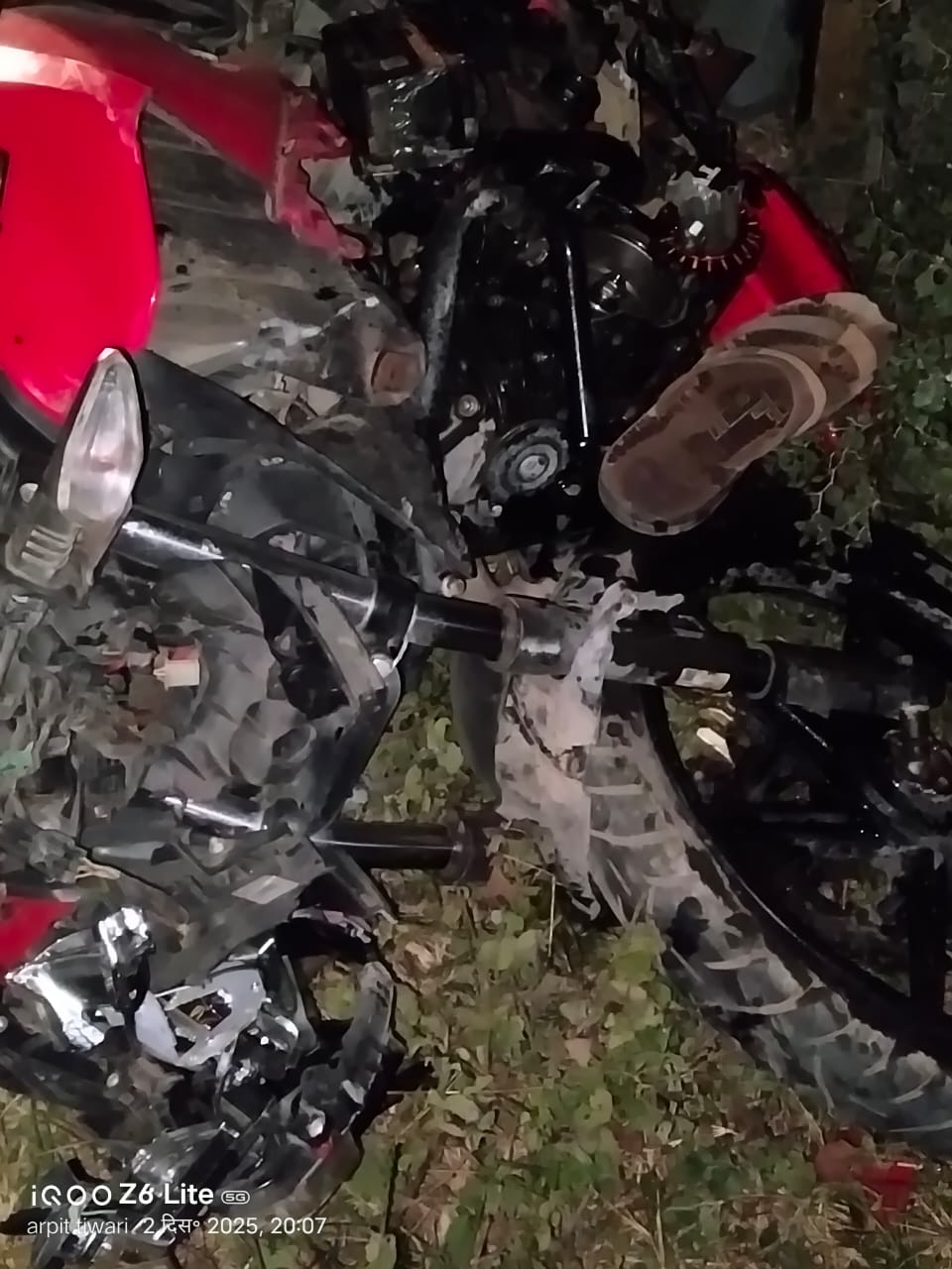 टक्कर इतनी भीषण कि बाइक हुई चकनाचूर