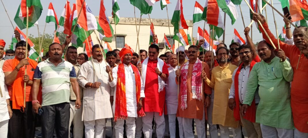 मोढ़ैला तक निकली तिरंगा यात्रा में भाजपा काशी क्षेत्र अध्यक्ष दिलीप पटेल,वाराणसी जिलाध्यक्ष व एमएलसी हंसराज विश्वकर्मा,रोहनिया के पूर्व विधायक सुरेन्द्र सिंह ‘औढ़े’,पिंडरा विधायक डॉ अवधेश सिंह,अजगरा विधायक त्रिभुवन राम ने भी पूरे उत्साह के साथ समर्थकों संग भागीदारी की। पूरे यात्रा के दौरान कार्यकर्ता तिरंगा लहराते हुए सेना के समर्थन में गगनभेदी नारेबाजी करते हुए चल रहे थे। विधायकों ने पत्रकारों से बातचीत के दौरान कहा कि आज पूरे भारतवासी सेना के शौर्य एवं पराक्रम से गौरवान्वित हैं। भारतीय सेना के वीर जवानों के उत्साहवर्धन के लिए देश का एक-एक नौजवान आज सड़कों पर उतर कर उनके सम्मान के लिए खड़ा है । पूरा देश प्रधानमंत्री नरेंद्र मोदी को सलाम कर रहा है। भारत की सामरिक शक्ति की अब पूरी दुनिया लोहा मान रही है। नेताओं ने कहा कि नौजवानों की शुभकामनाएं सेना के साथ है। बाबा श्री काशी विश्वनाथ से प्रार्थना है देश के प्रधानमंत्री मोदी को स्वस्थ और मजबूत रखें । गीदड़ धमकी देने वाले पाकिस्तान को मुंहतोड़ जवाब देने के लिए हमारे देश की सेना पर्याप्त है। ऑपरेशन सिंदूर की सफलता का संदेश कार्यकर्ताओं ने जनमानस तक पहुंचाने के लिए यात्रा में तख्तियां भी लहराई। इस दौरान राष्ट्रप्रेम और सेना के प्रति सम्मान का भाव उनके चेहरे से झलक रहा था।