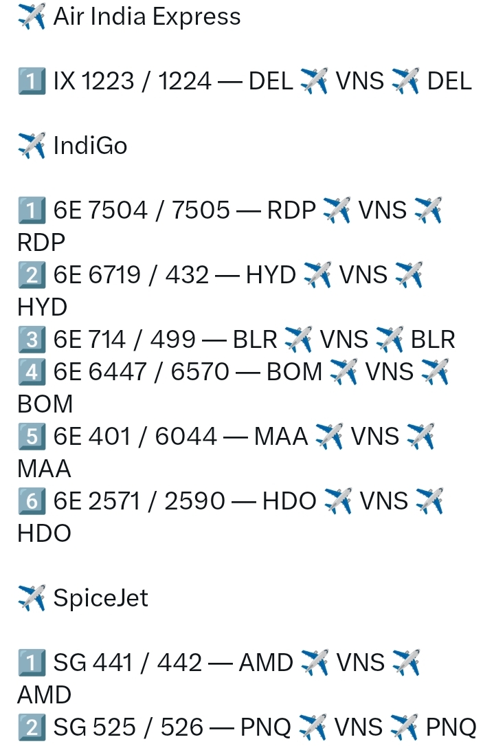 ये सभी उड़ानें वाराणसी से दिल्ली, अहमदाबाद और अन्य प्रमुख शहरों के लिए निर्धारित थीं।