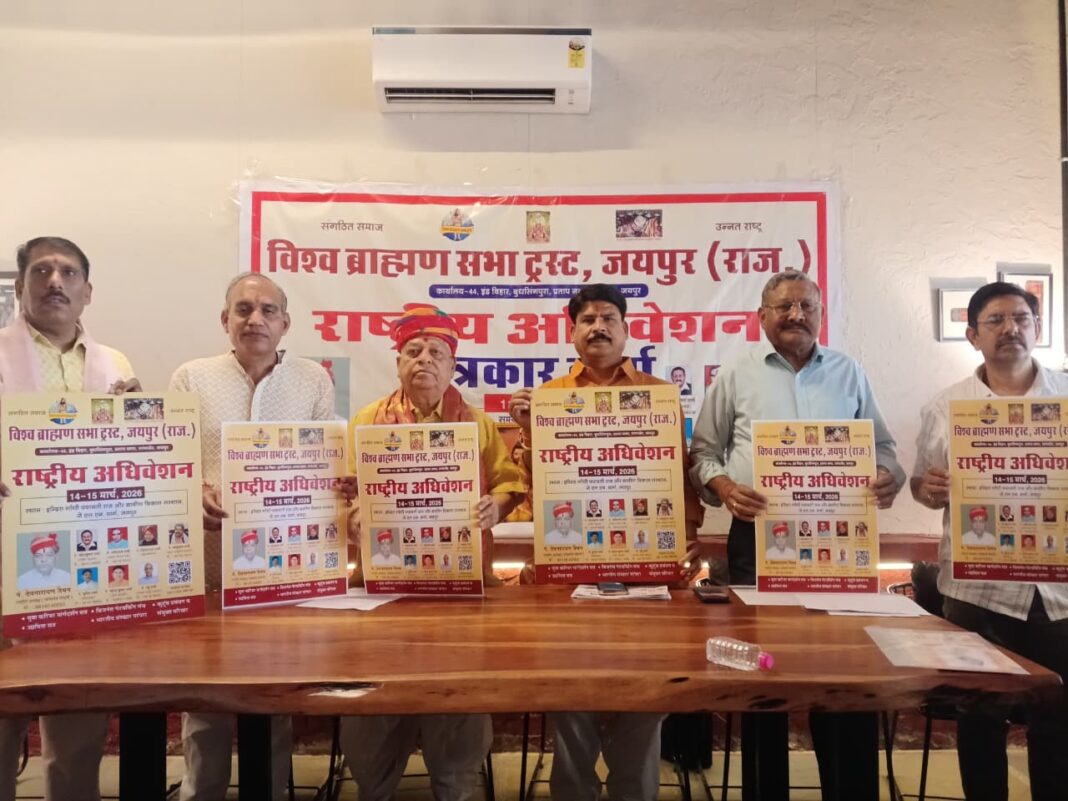 विश्व ब्राह्मण सभा राष्ट्रीय अधिवेशन जयपुर का शुभारंभ देश के प्रमुख संत-महात्माओं के सानिध्य में किया जाएगा।