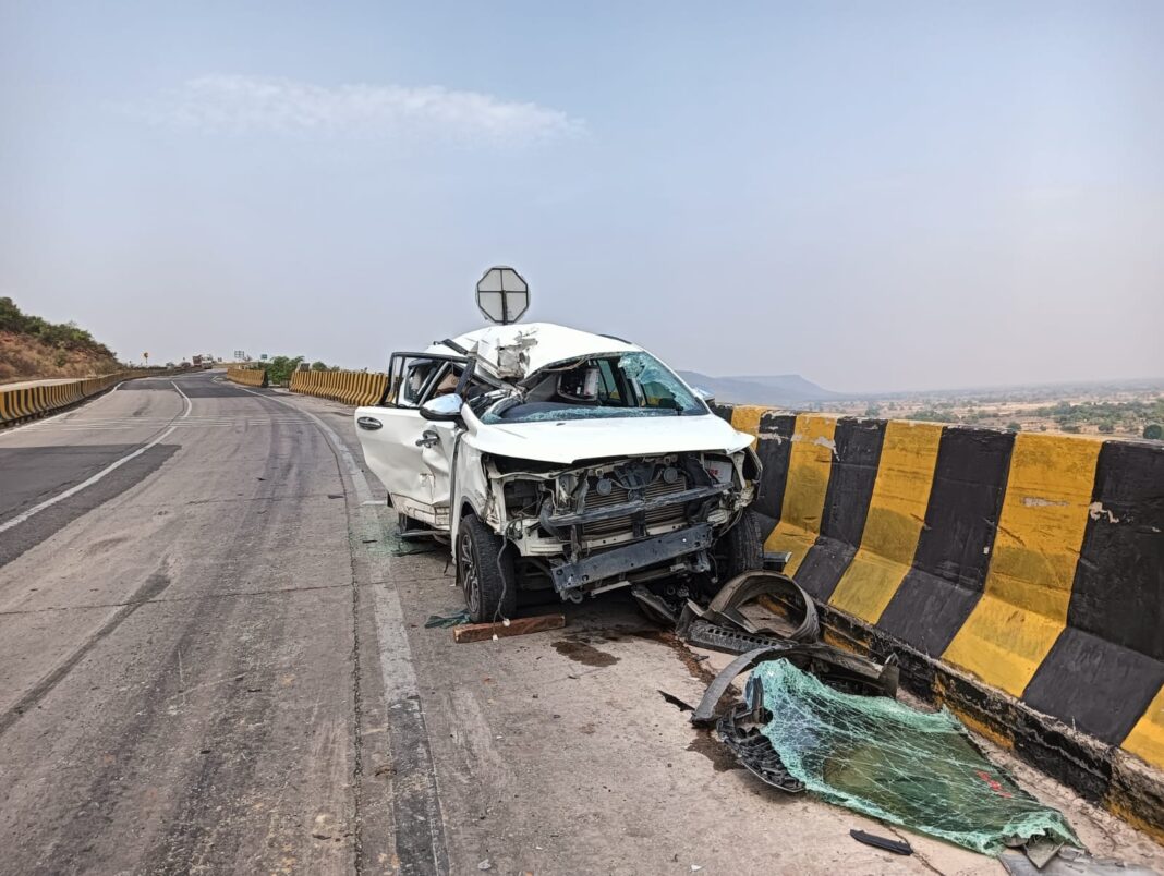 ट्रेलर की टक्कर से कार सवार महिला की मौत, दो घायल
